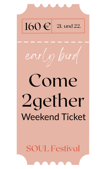 Mit dem Early Bird Come 2gether Ticket Weekend erlebt ihr das volle Programm des SOUL FESTIVAL über zwei Tage – geballte Energie für Körper, Geist & Seele.